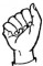 На ћирилици написано ДРЕНКА ГОНЕВ састоји се из 11 слова [?]. Исписано ћириличном једноручном азбуком за глувонеме: